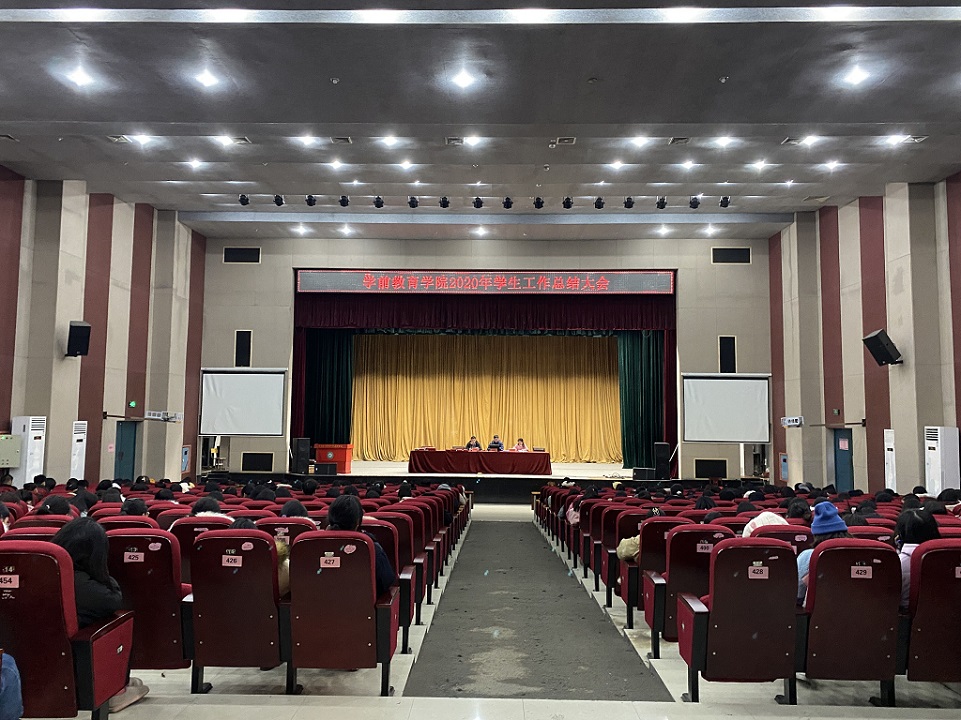 为总结2020年学院一学年学生管理工作,促进2021年学生管理工作向好发展,1月2日下午,学前教育学院于演艺厅召开2020年度学生工作总结表彰大会。出席本次会议的有学前教育学院党总支书记谢耀华,分管学生工作的副院长周知胜,分管教学工作的副院长冷佩坤,全体辅导员班主任,学生干部代表及在校班级学生代表。