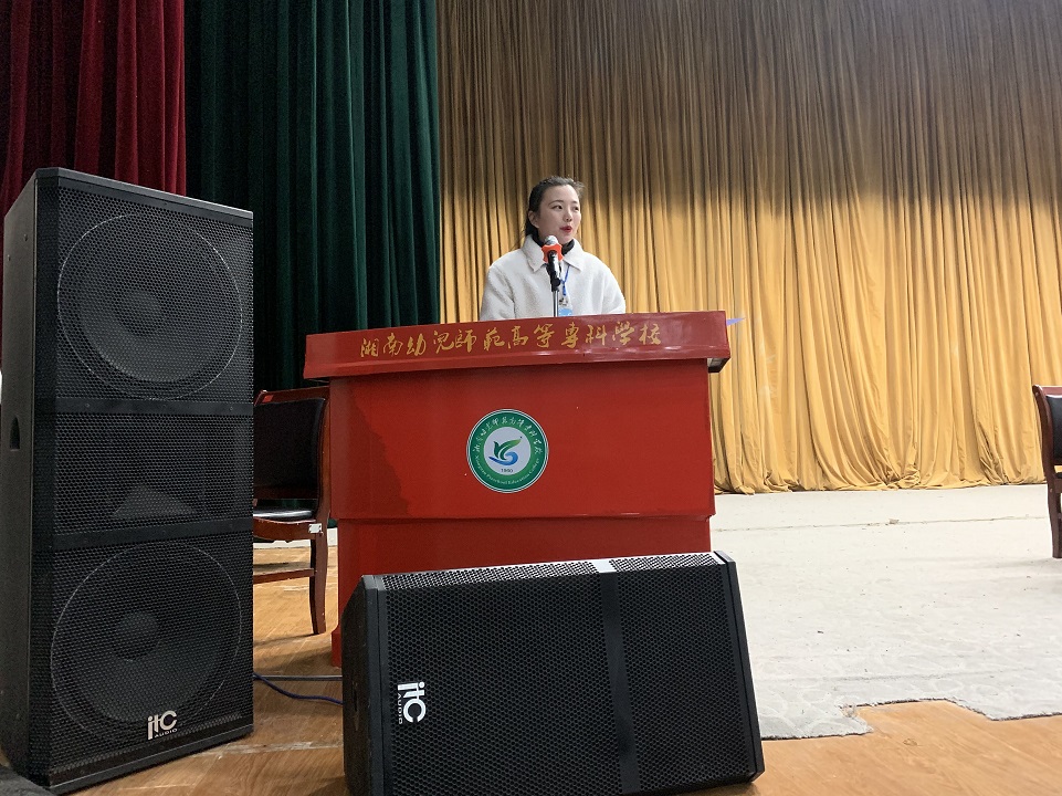 会议首先由学前教育专业三年制1909班班长杨欣瑜同学代表学生干部发言,她围绕学习生活、个人成长、班级管理等方面与大家进行交流分享。