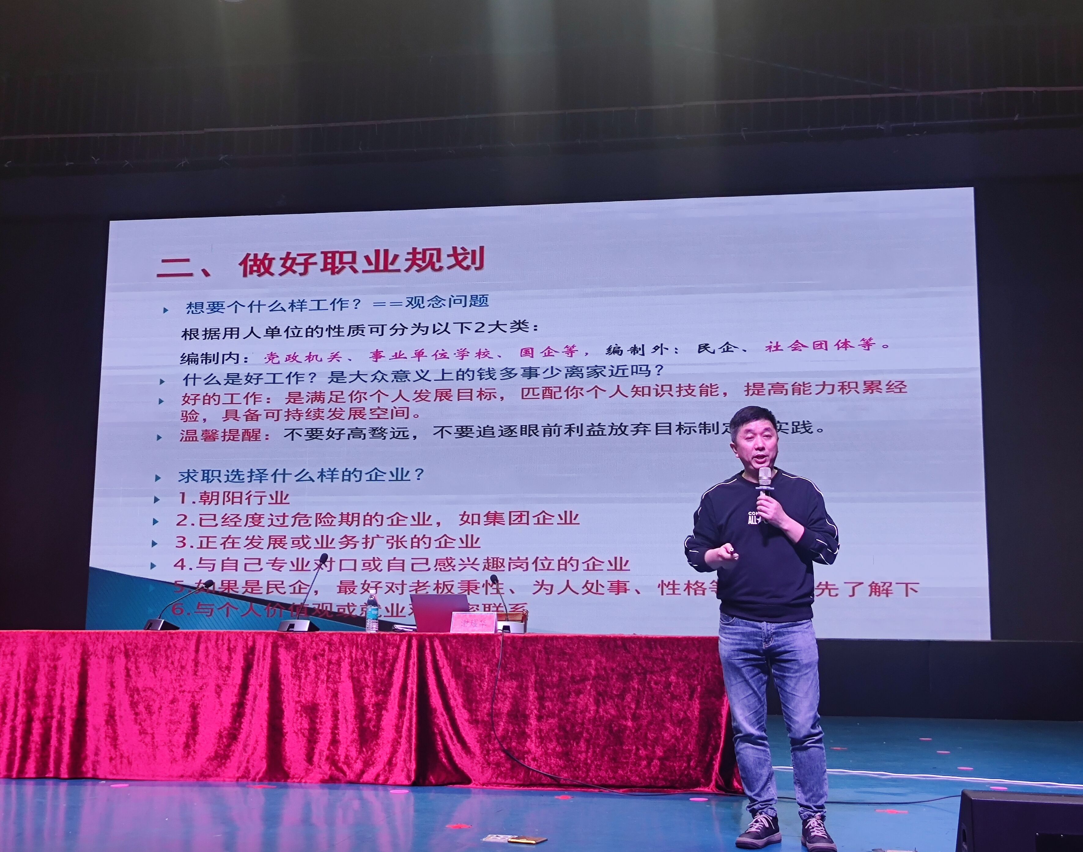 谢耀华就就业相关注意事项进行了详细介绍并与同学们交流互动,解答同学们在就业问题中的疑惑。他首先介绍了我院历届毕业生毕业去向及疫情下就业环境现状,从如何做好职业规划与求职、如何签订协议与合同、就业报到证与试用期、参加招聘会注意事项等方面进行指导,指出各环节易出现的问题,特别是在职场中面试的礼仪礼貌与忌讳点。同时给予毕业生们四点忠告:一是认真签订协议;二是严格履行协议;三是维护自身权益;四是谨慎对待违约。最后,谢耀华为毕业生推荐优质就业信息网站,鼓励大家积极了解就业信息,提前做好充分准备,并祝愿毕业生们能以最佳状态去迎接最适合自己的职位。