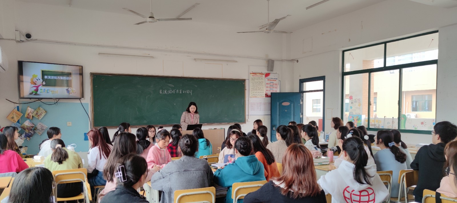 我院本学期以来,为把脉常态课堂,将推门听课常态化以促进课堂优质化。为深入了解我院的教育教学工作开展情况,促进我院常态化教学质量的提升,4月29日上午8时,党委副书记李国华、教务处处长史凌云、教务处副处长蔡胜平、院领导谢耀华、冷佩坤及学院各主任,走进教学楼,聆听了梁娟主任的《表演游戏方案的设计》。