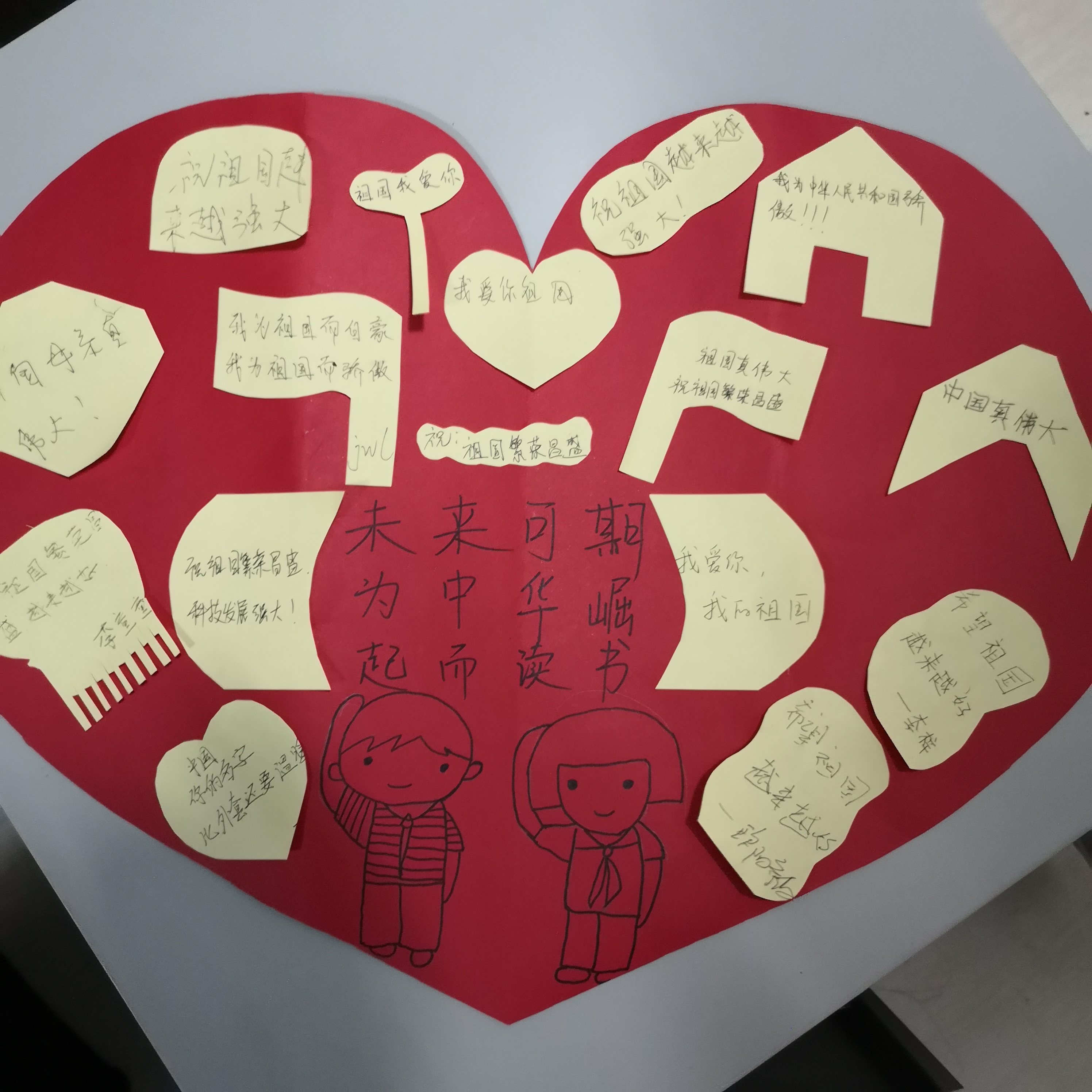 本班在2019年10月14日10:50——11:50在友阿开展了“与梦同行”自主志愿服务活动,班级32名同学参与。活动内容为:内容一为对于来往的市民们,志愿者们讲解一些爱国的知识,然后回答出社会主义核心价值观就可以得到一个红色爱国小气球,内容二邀请市民们对于祖国写一些祝福的话语,和对自己的一些未来美好的展望,写一些励志的话语,然后合集做成一些可爱的小图形,弄个“爱国小拼盘——祖国妈妈我对你说”。