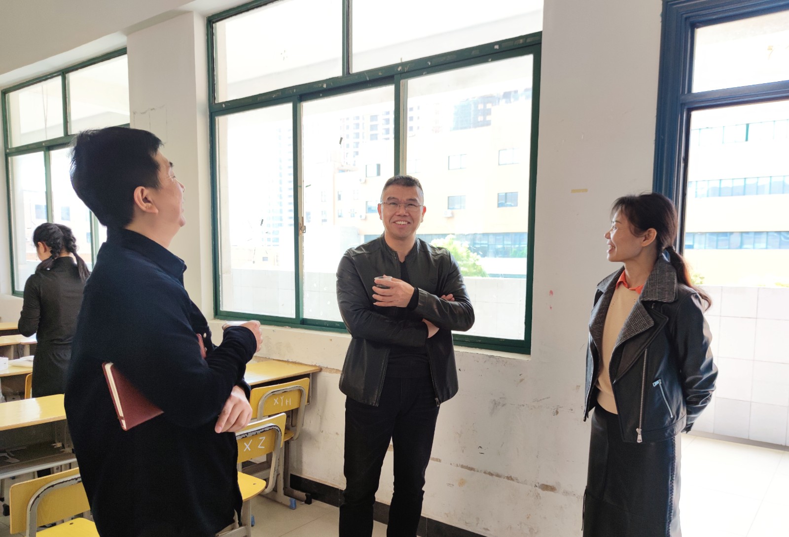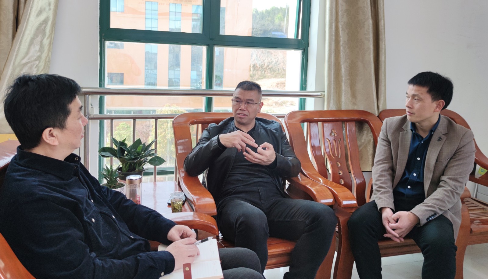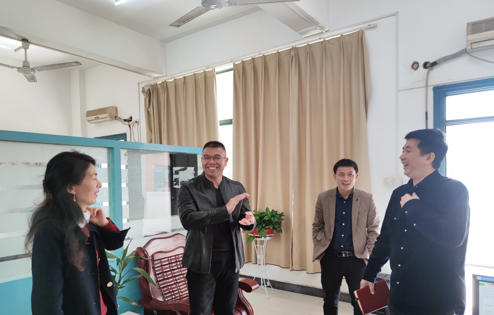 最后来到了院党支部书记办公室,雷纯忠就我院基本情况、学工办人员结构、教学体制、学生工作及毕业生就业等方面的工作与谢耀华、周知胜进行交谈,对我院已取得的成绩给予了充分的肯定与赞赏,并围绕大学生思想政治教育、心理健康教育、创新创业等特色教育进行了深入的交流与探讨。