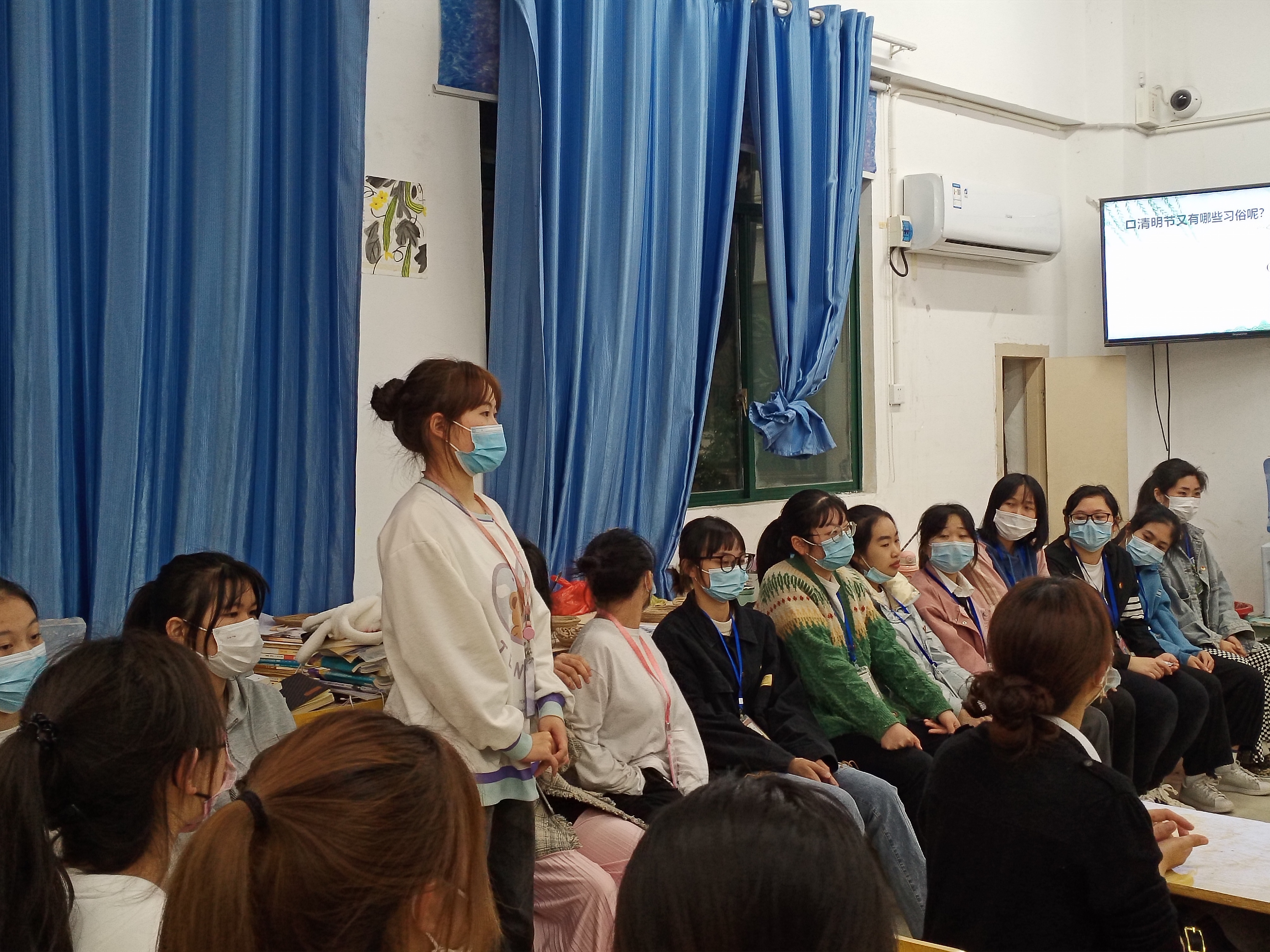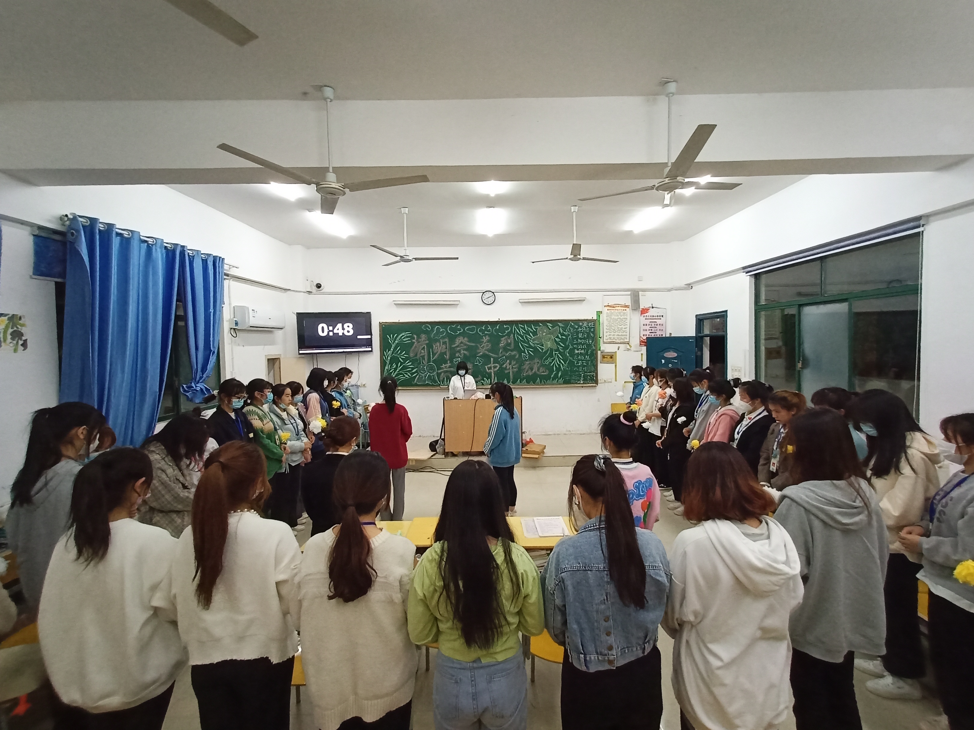 默哀一分钟,时之短,情之长,先烈遗志,薪火相传,久久难忘。通过图文介绍让同学们了解清明节和中国传统节俗文化,观看革命先烈的事迹影像。“现在清明节不再只是一家一户祭祖的日子,封校期间我们更应该以身作则,不给国家添麻烦,而且我觉得线上‘沉浸式’的庄严祭扫仪式也能祭祖和缅怀先烈,很绿色,很文明。”学前21级(三)01班李欣欣说到。