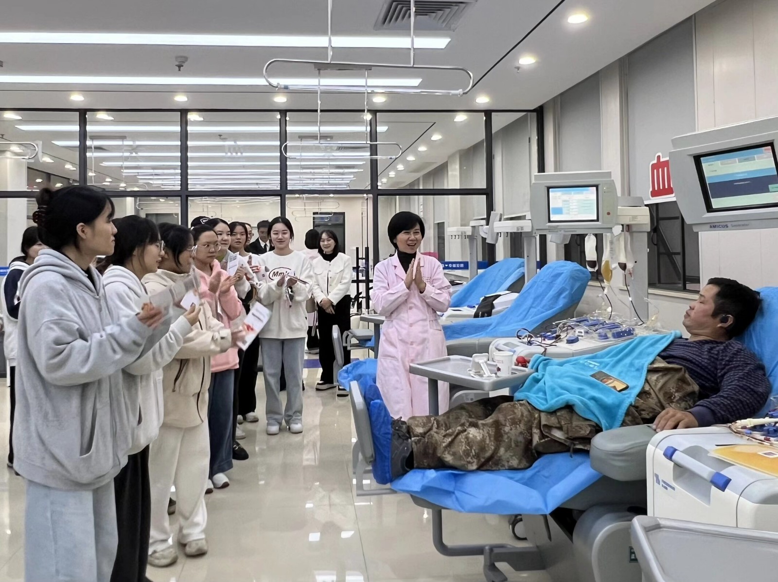 在血站工作人员的精心安排下,师生们依次参观了血液采集、检测、制备、储存等完整流程。通过实地观摩和专业讲解,同学们深入了解了一袋血液从采集到临床应用的全过程,对血液安全的重要性和无偿献血的意义有了更加直观的认识。在机采室,同学们近距离观看了血小板采集过程,无不为之精湛的技术与严谨的安全保障所折服,同时还偶遇了正在进行机采血小板、二十年来献血200多次的“中国好人”何志龙,师生们均被他用热血点亮生命之光的精神所感染。小教五2305班田航宇说“这次实践让我真切感受到血液是生命的礼物,每一袋血都承载着无私的爱与希望。作为小教专业的学生,我将来要教育孩子们懂得奉献与感恩,让公益精神在下一代心中生根发芽。”学前三2404班胡秀程说“参观血站让我对生命的意义有了更深的理解,尤其是何志龙先生二十年如一日的坚持,深深打动了我。我将身体力行,用实际行动传递温暖与希望。”