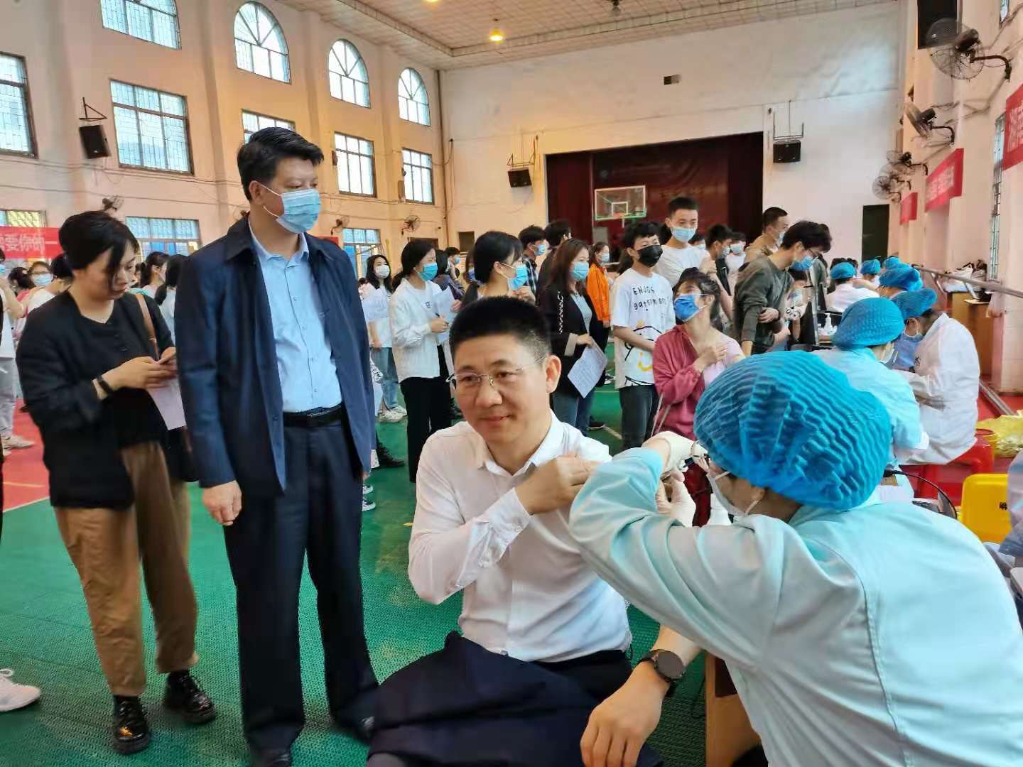 5月24日下午,下湄桥街道办事处骆青玉主任和北湖区疾控中心、街道社区卫生服务中心的负责同志来我校进行现场考察,认为我校符合设点条件,当即决定调派医务人员和设施设备来我校设点,学校后勤管理处连夜加班加点布置场地、安装设备,并做好教职工和各学院学生的接种安排,25日上午我校接种点顺利开始进行接种工作。
