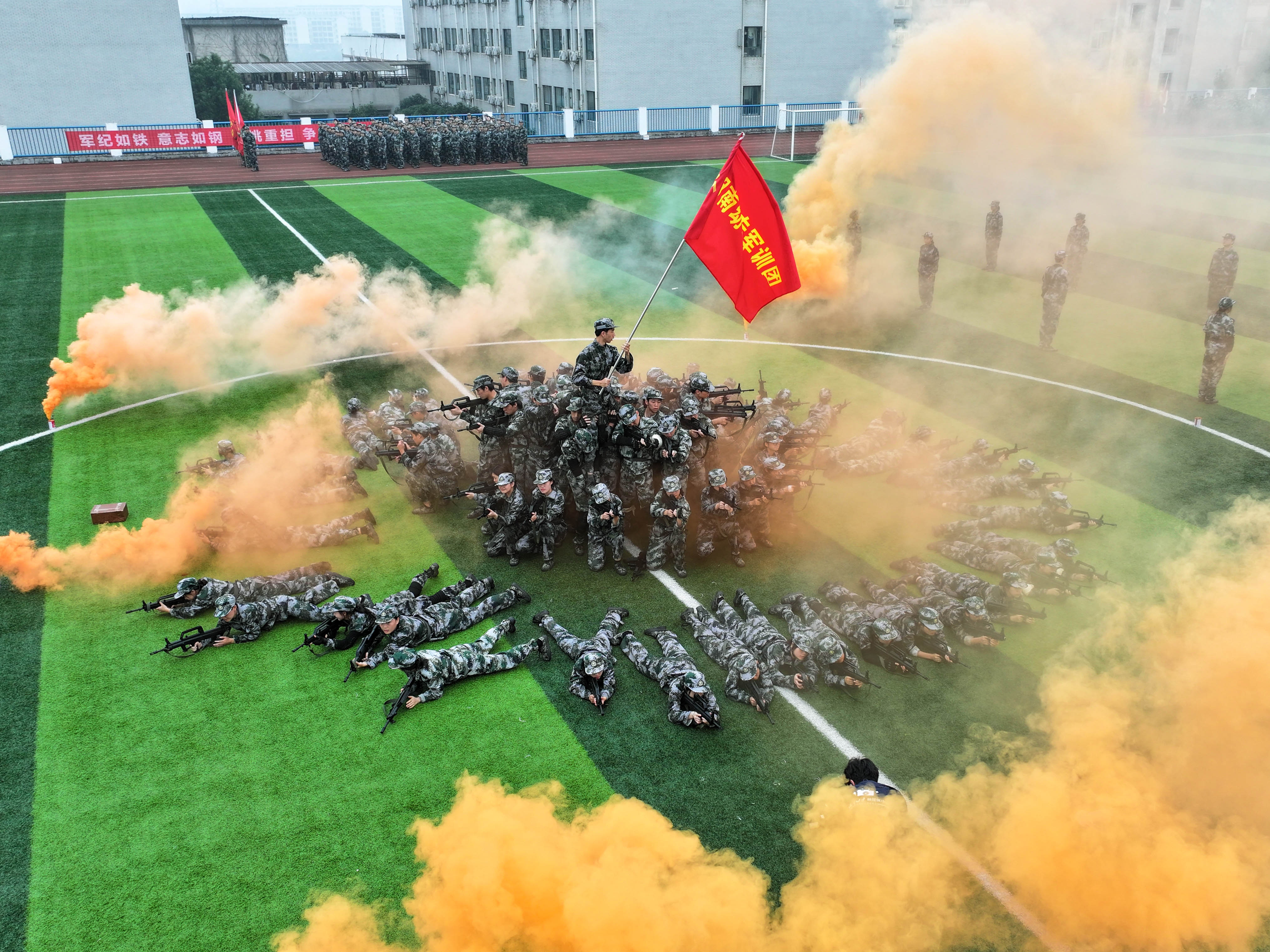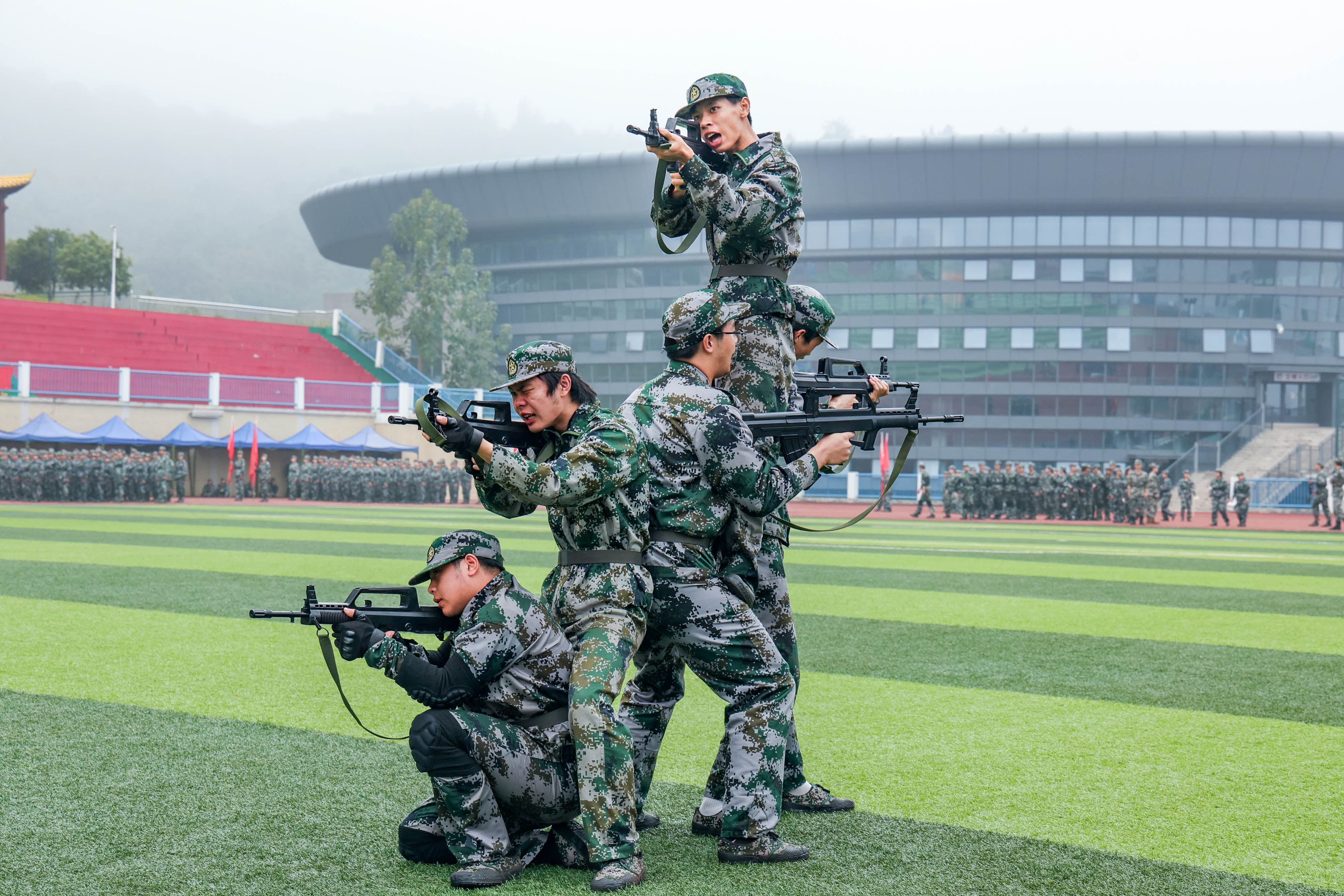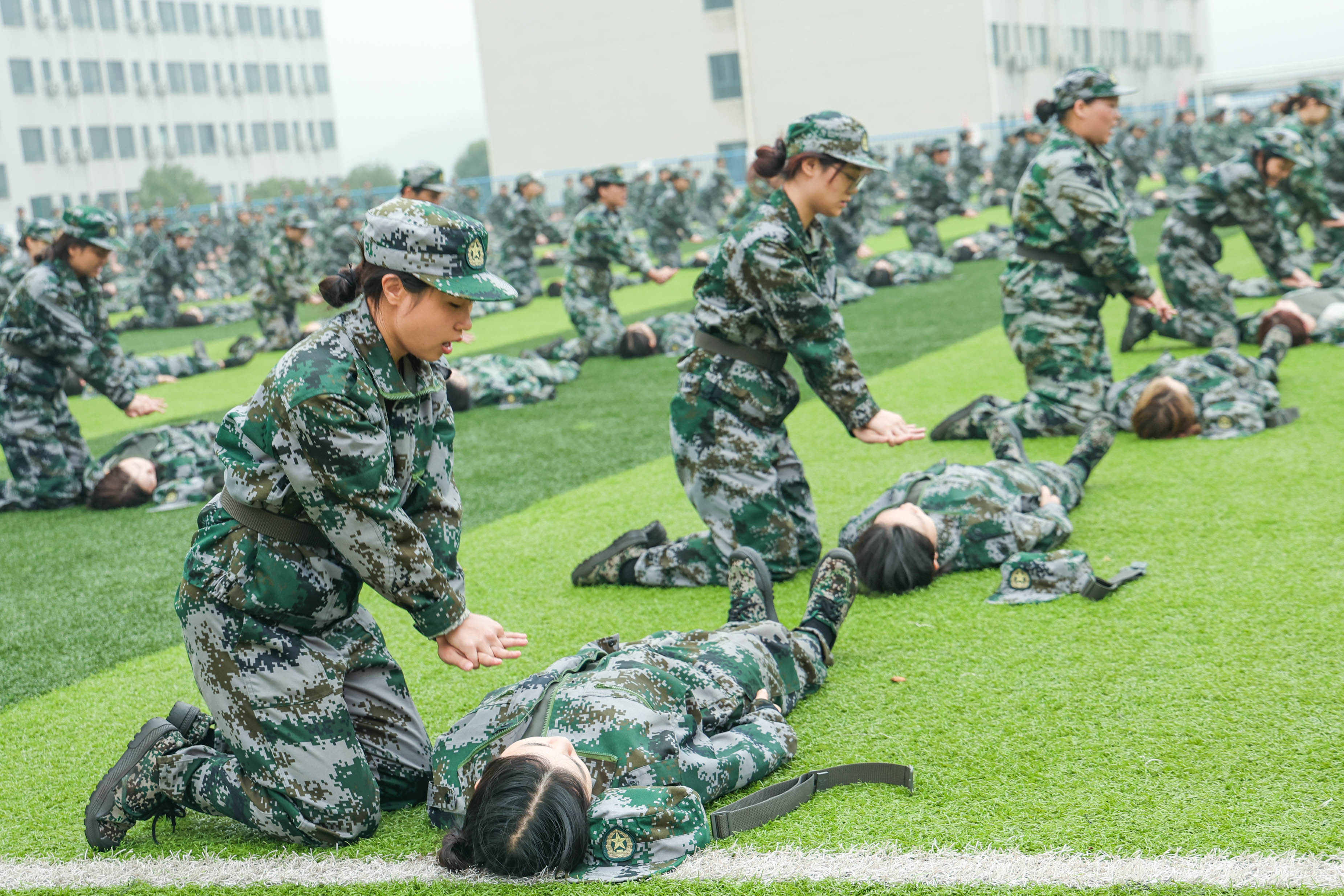 在军事技能展示环节,参训学员方队气势如虹,尽显青春力量。同学们首先进行了防卫技能拳术训练展示,动作刚劲有力,口号响彻云霄,尽显湘幼学子踔厉奋发、昂扬向上的精神风貌。紧接着的紧急救护示范训练,模拟战场救护场景,动作规范、反应迅速,体现了同学们珍爱生命、守护安全的素养。在战术战斗场景训练中,战术方阵呈现出各种迅速、标准的战术动作。流畅的团队合作、强大而稳健执行力是他们学习到最重要的东西。