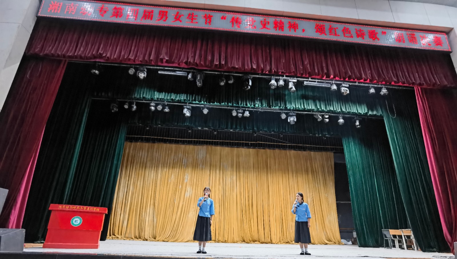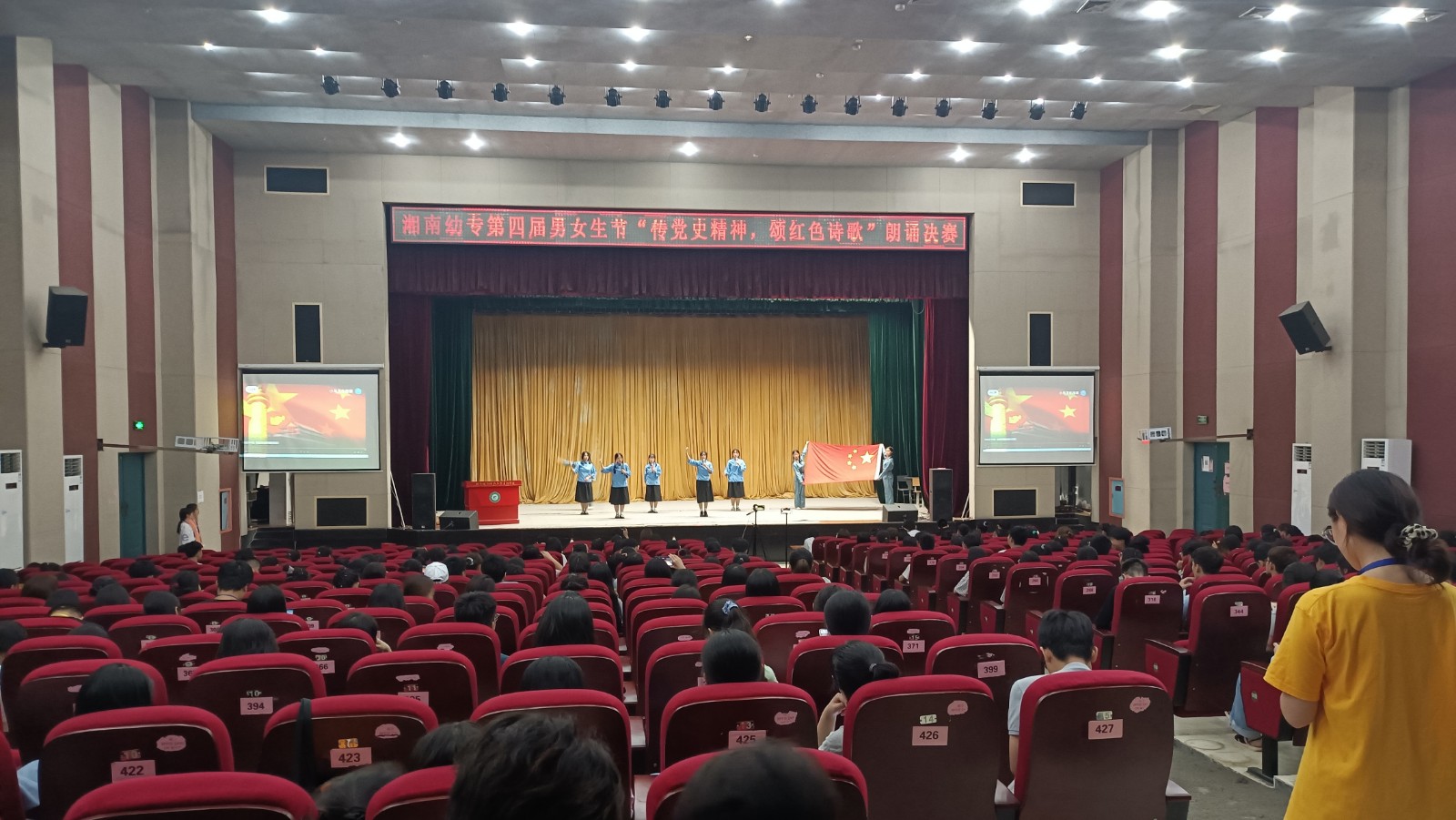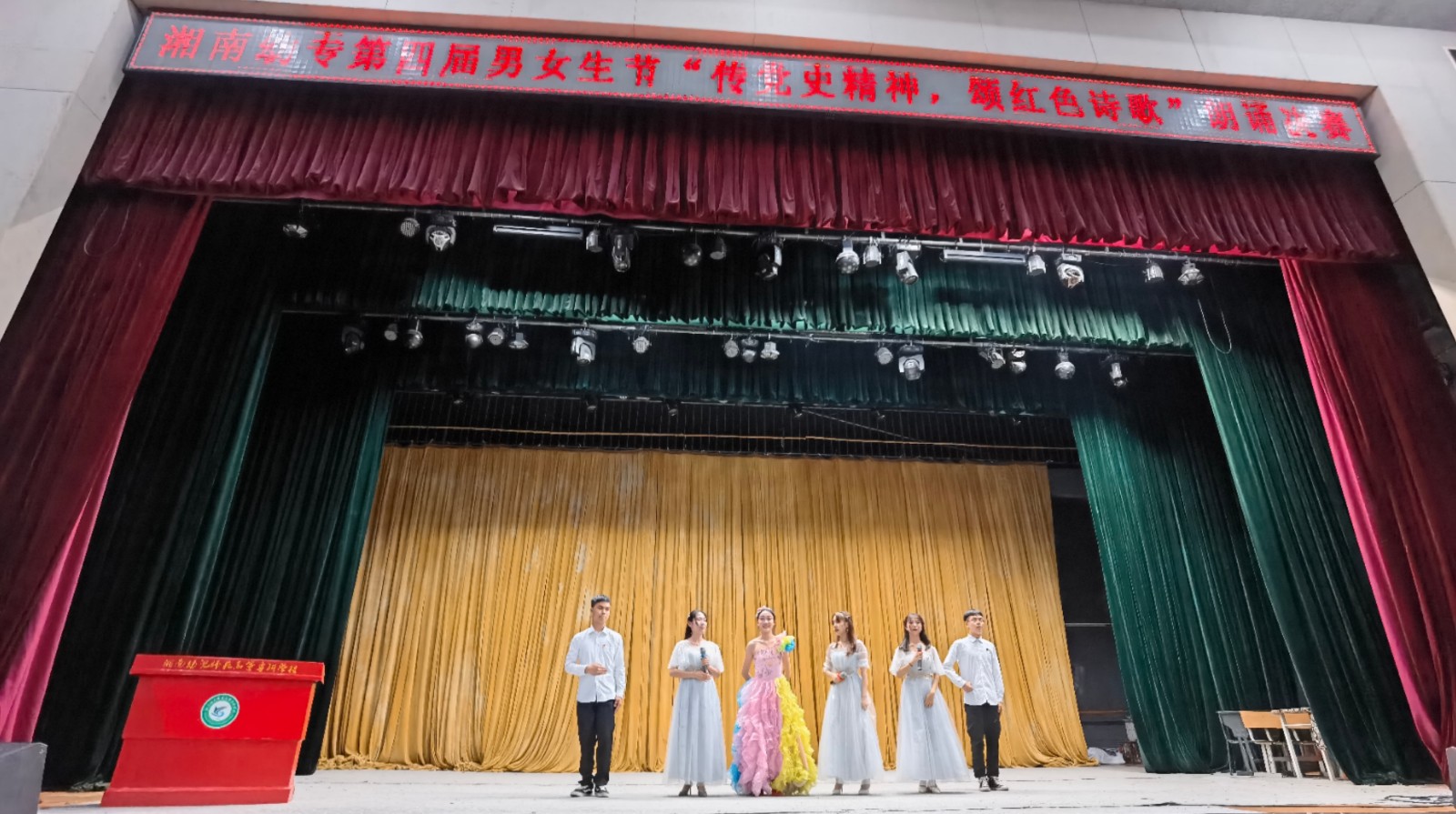6月1日晚,由学工处、团委主办,校学生会成长服务部承办的第四届男女生节“牢记初心使命,拼搏湘幼青春”系列活动之“传党史精神,颂红色诗歌”朗诵比赛在演艺厅举行。