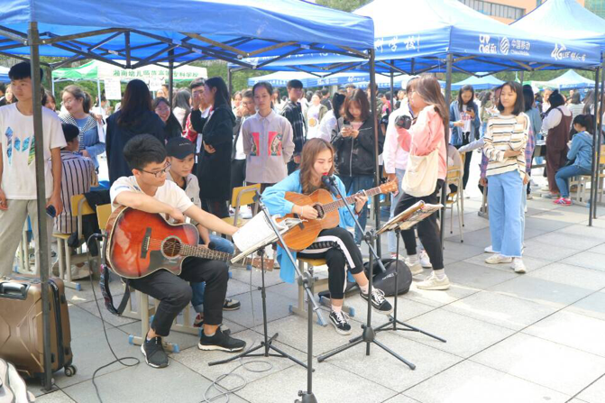 教学广场上人山人海。团委书记邓宜湘、团委副书记邓文琳来到了招新现场,与各个社团进行了互动。众社团都拿出自己最拿手的才艺,将社团的精彩呈现在同学们面前。吉他弦乐拨动心弦,非洲鼓声悦动心情,激情的音乐再配上街舞的动感,还有各具特色的跆拳道服饰、汉服、Cosplay服装……无一不表现出幼专社团的精彩与活力。整个现场百音齐奏,社旗飘飘,各社团都尽情地展示着社团人的风采,挥洒着青春的汗水,迎接着一批新鲜的、充满活力的血液。