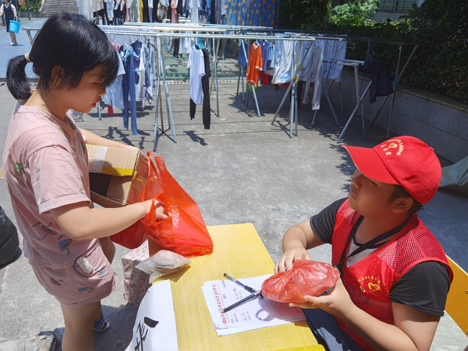活动现场十分热闹,同学们都积极参与,将自己不便带走的书籍、衣物以及生活用品捐赠至各宿舍楼下的志愿捐赠站。