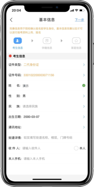 完善基本信息、学籍档案以及家庭信息等的填写,填写完成后可以点击下一步进入预览效果,考生确认无误后确认提交
