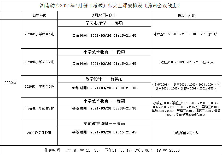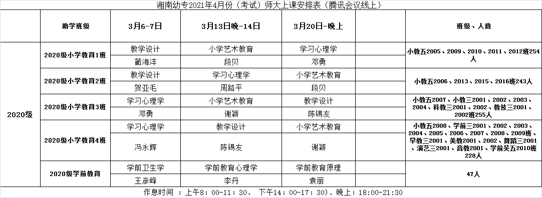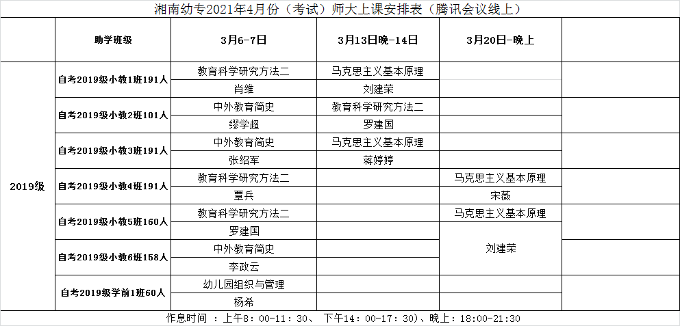 2021年3月,湖南师范大学继续教育学院安排教师为湘南幼专19级、20级自考助学班学生进行集中授课。为保障学生学习效果,我校继续教育学院工作人员及自考助学班班主任安排学生在教室集中听课学习,同时进行集中管理,充分发挥了“互联网+教育”、线上+线下混合式学习模式的优势。此次共2078名学生参加集中授课,学习效果良好。