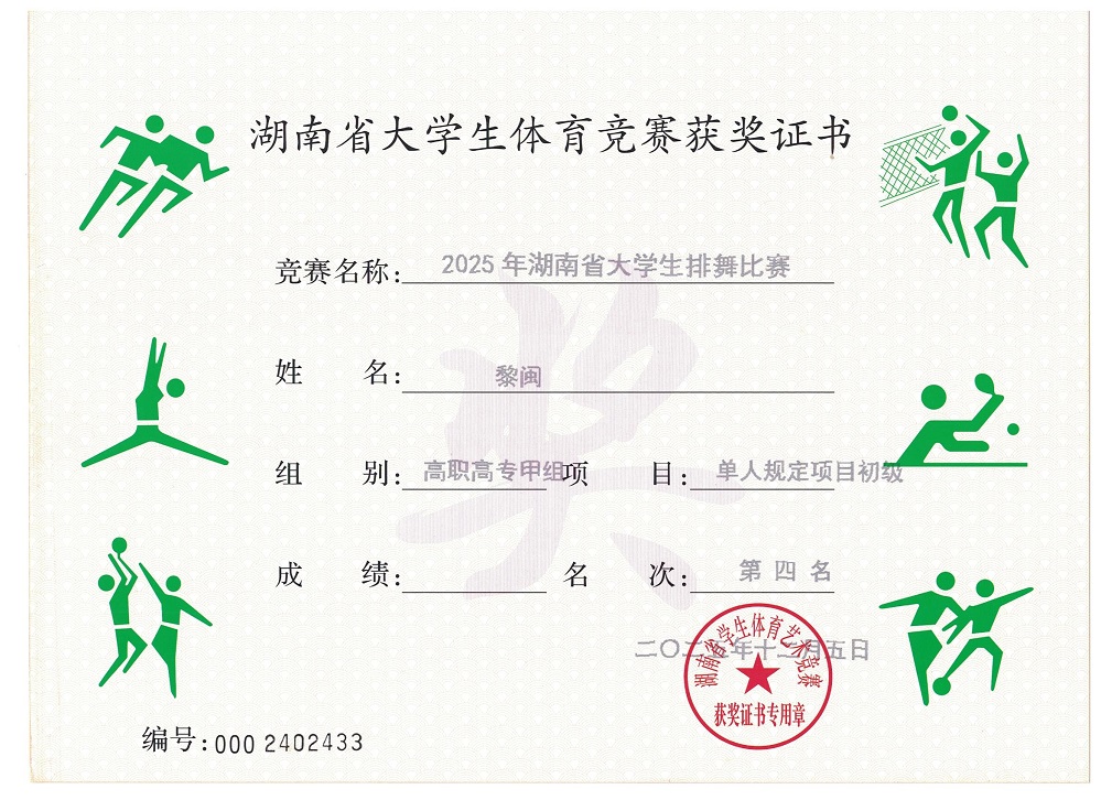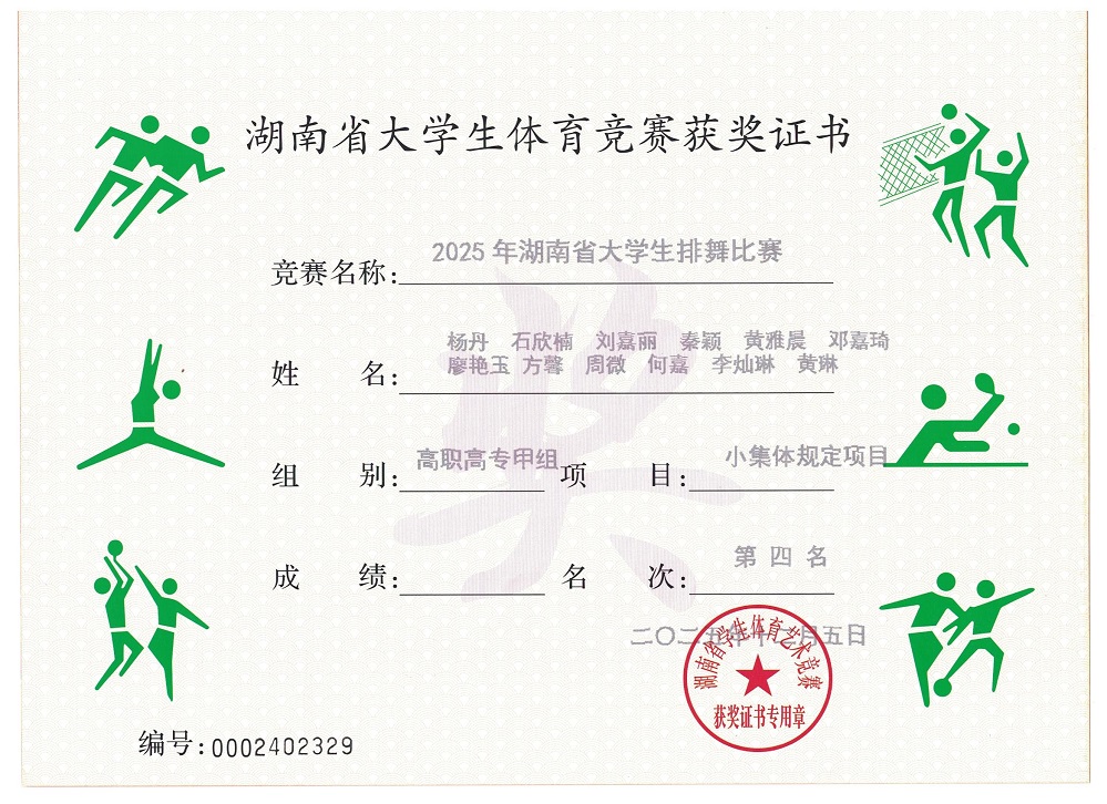 12月6日,在刚刚结束的2025年湖南省大学生排舞比赛中,由我校王美林、钟媛、梁宏三位老师指导的作品《舞动中国》荣获大集体规定项目第二名,《我和2035有个约》获小集体规定项目第四名,《西兰花》获单人初级规定项目第四名,实现“首战告捷”,充分展现了我校学子的艺术风采与团队战斗力。